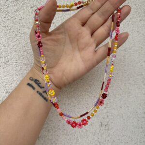 • naszyjnik żmijka, naszyjnik z kolorowymi kwiatuszkami