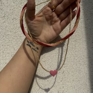 • naszyjnik z ręcznie szytym serduszkiem