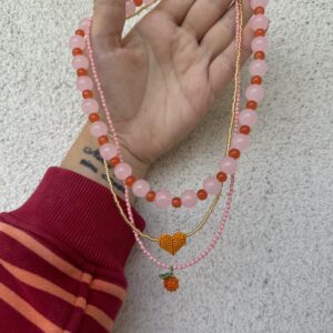 • zestaw naszyjników, okrągły ze szklanych koralików, naszyjnik z serduszkiem, naszyjnik z pomarańczką
