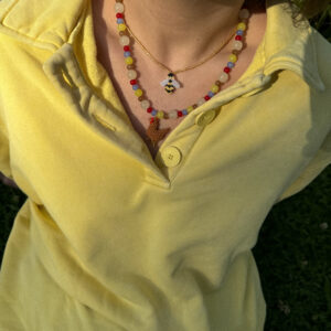 • naszyjnik z wisienkami i złoty naszyjnik z małych szklanych koralików