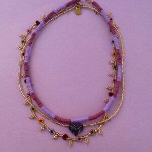• zestaw naszyjników z fioletem i złotem