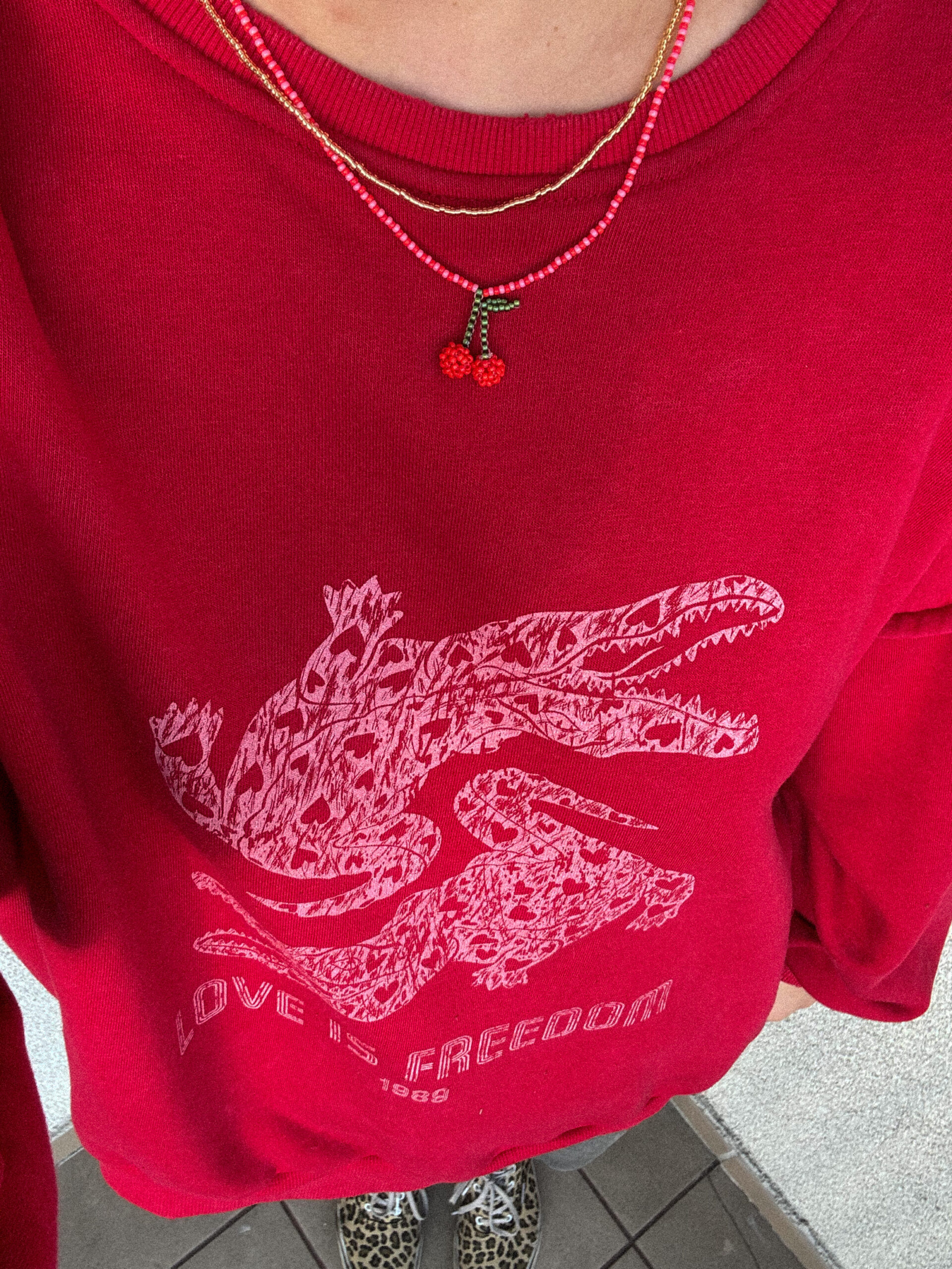 W zestawie znajdziesz także drugi, delikatny naszyjnik w złotym kolorze, który doskonale komponuje się z wisienkowym akcentem i pasuje do wszystkiego – od codziennych outfitów po bardziej eleganckie okazje.