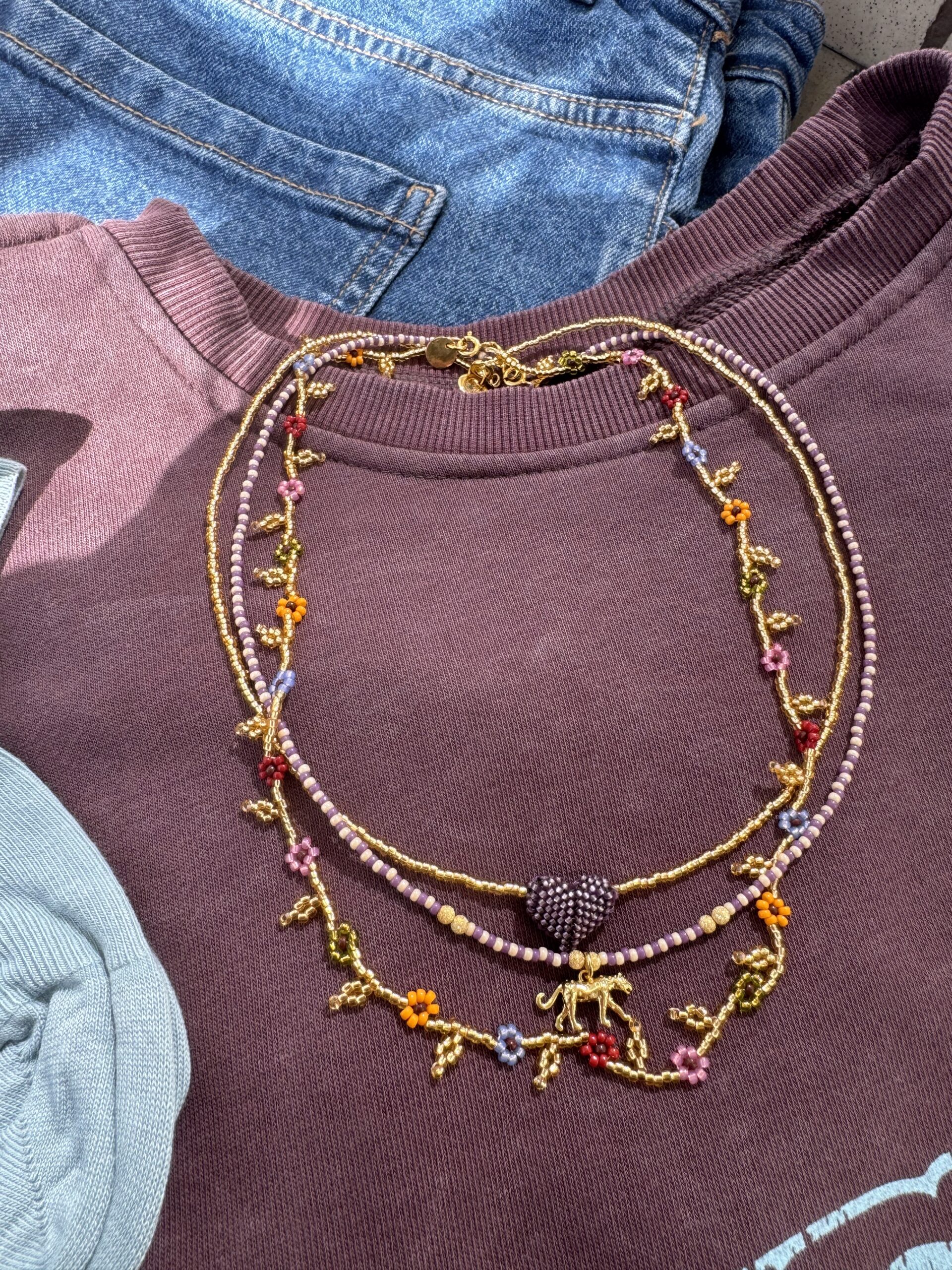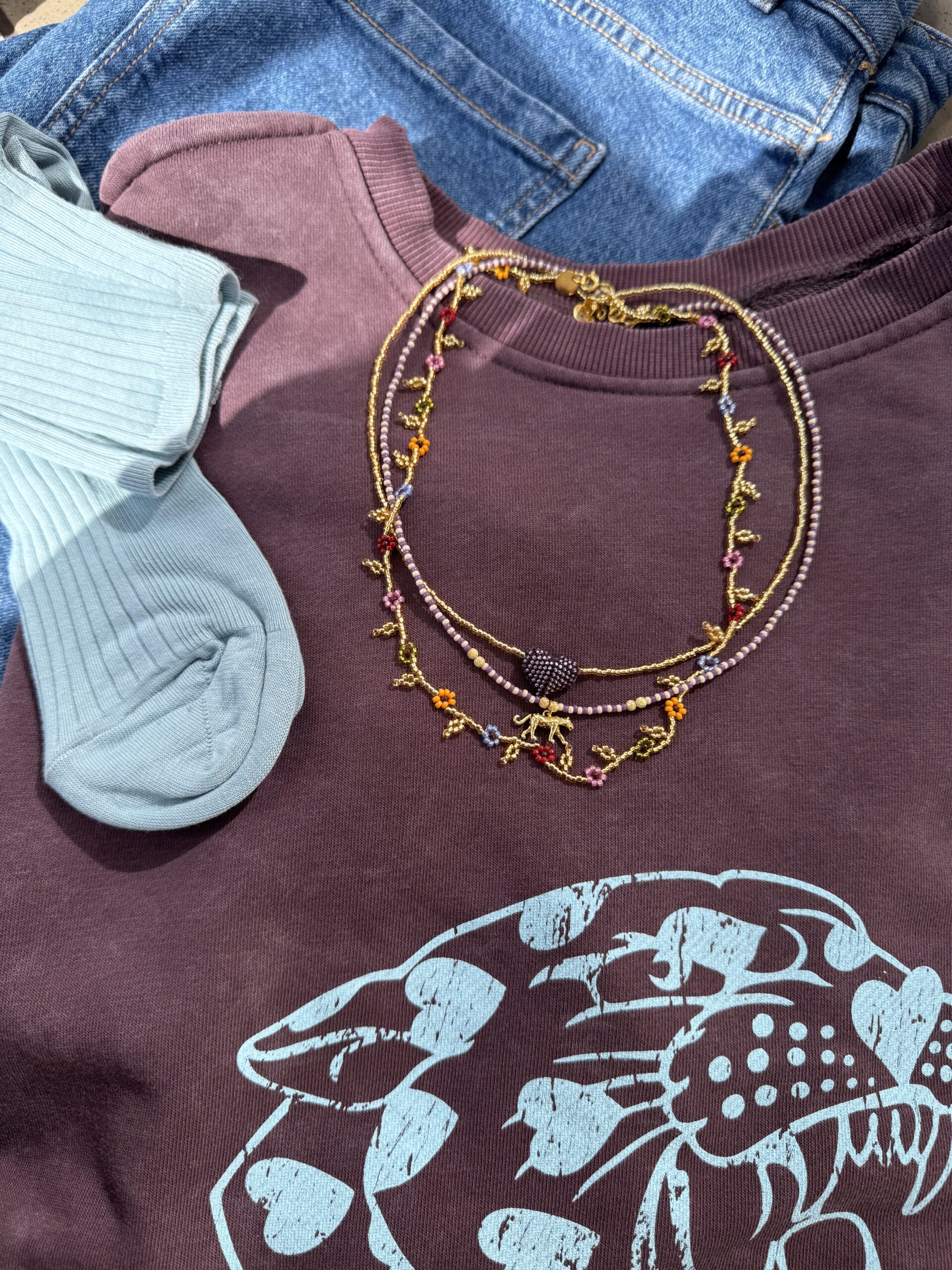 Ręcznie szyty naszyjnik z kwiatuszkami