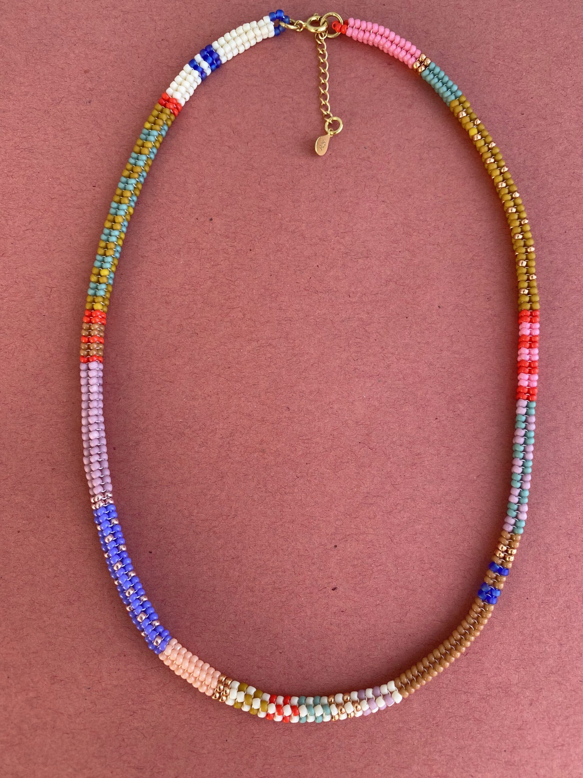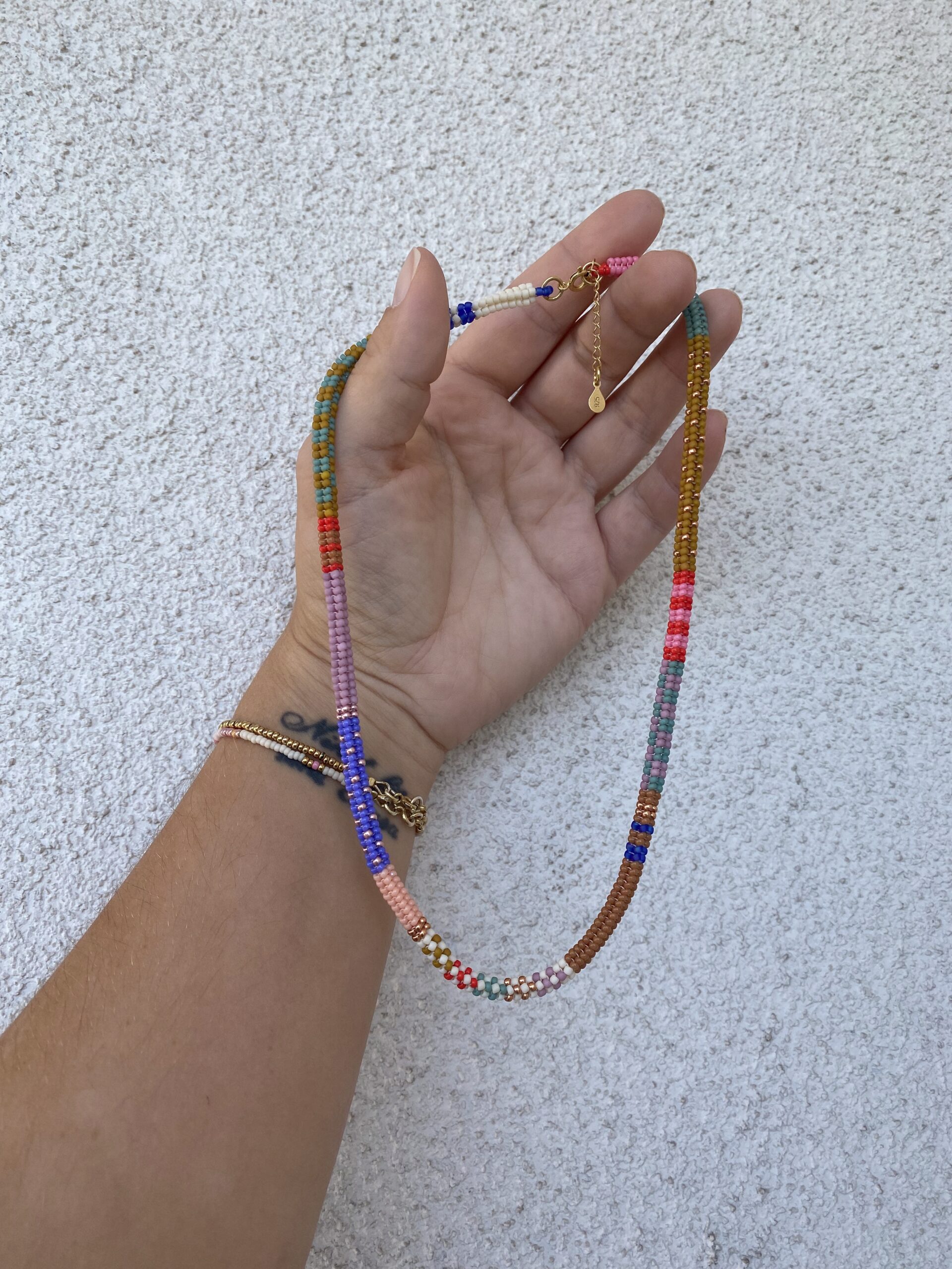 Poznaj naszyjnik, który powstał z pasji i precyzji – ręcznie szyty koralik po koraliku, tworzący unikatową kostkę pełną żywych, słonecznych barw. Inspirowany słońcem, plażą, morzem oraz górskimi wędrówkami, ten naszyjnik to prawdziwa esencja letniej energii i wolności.