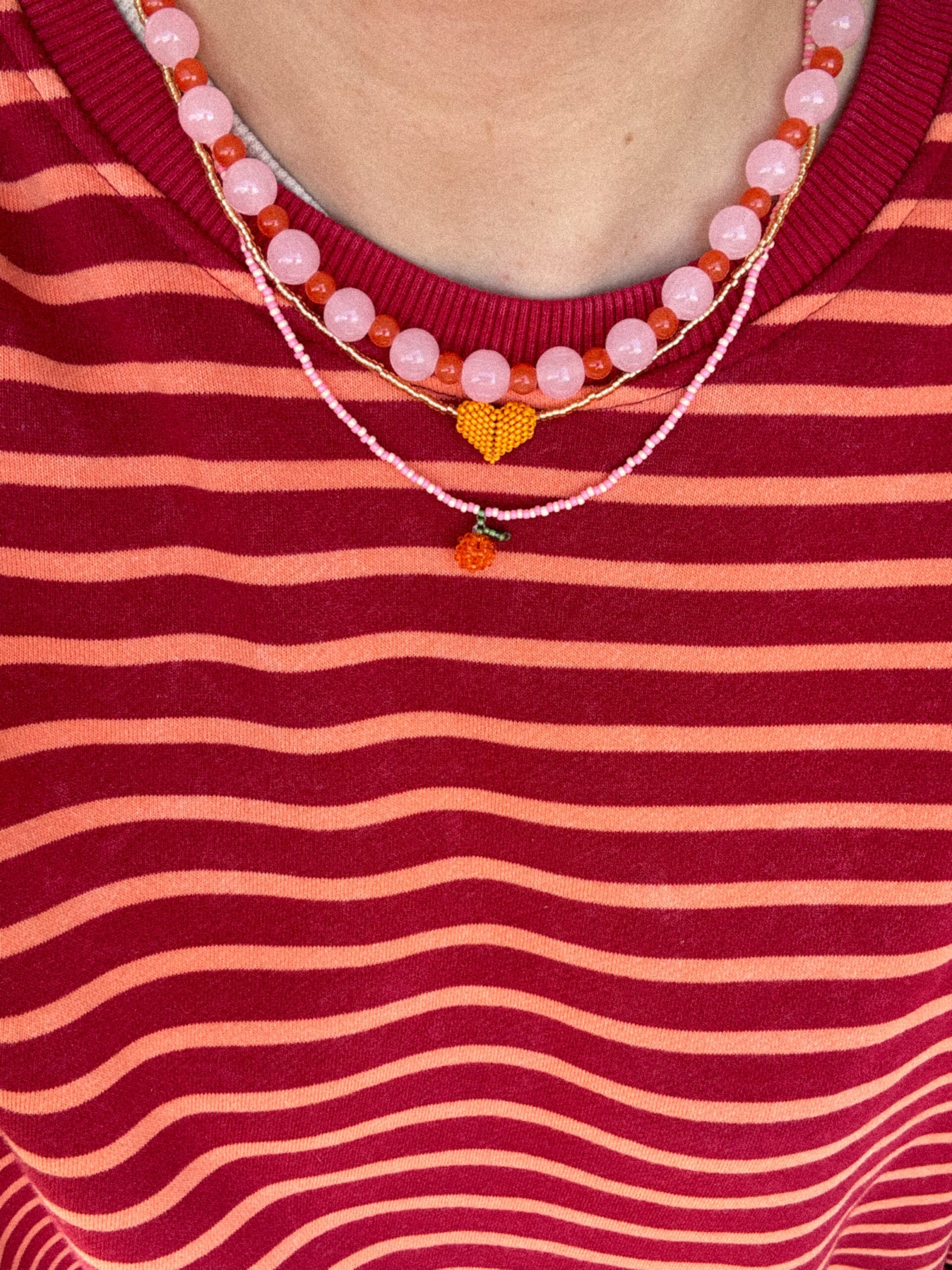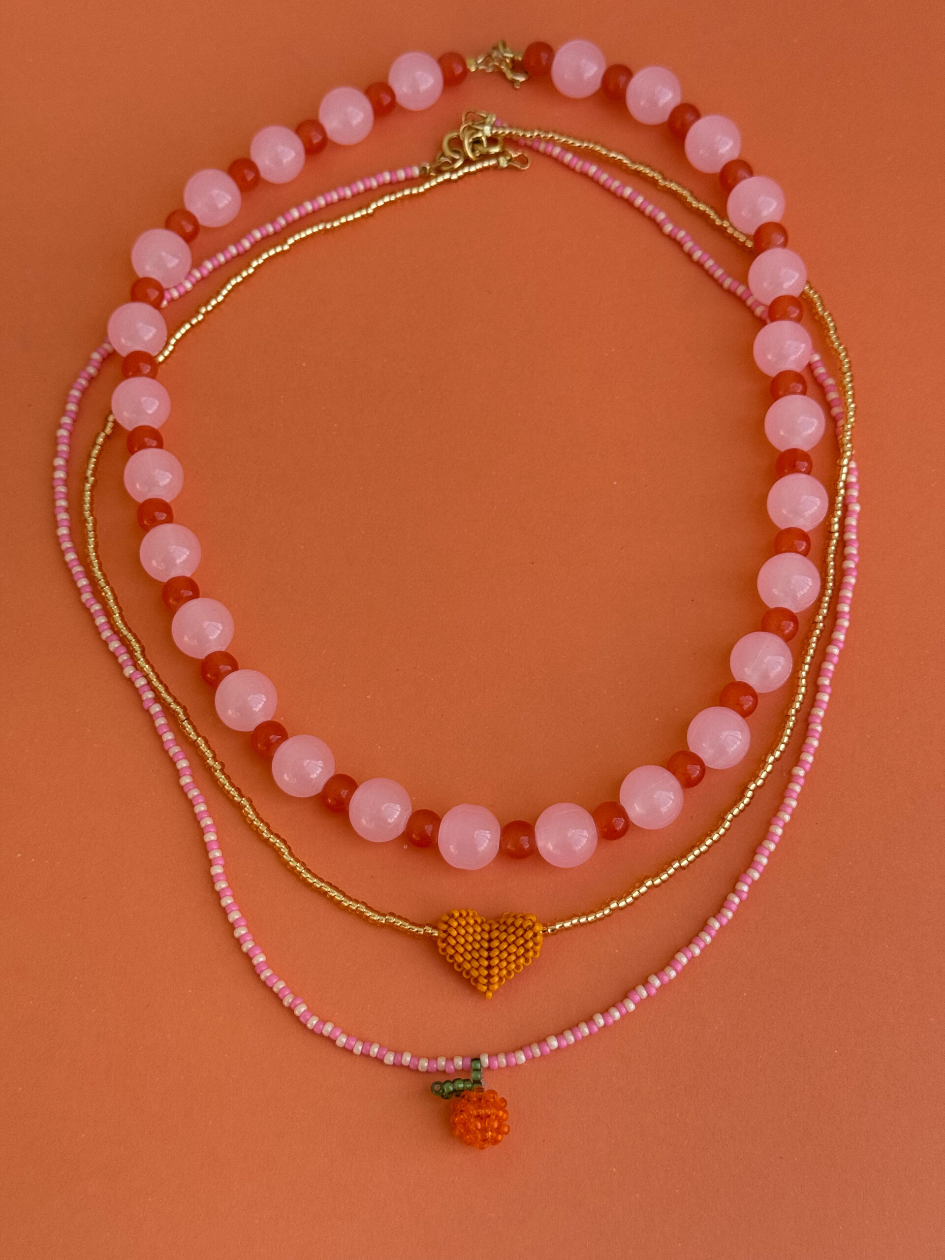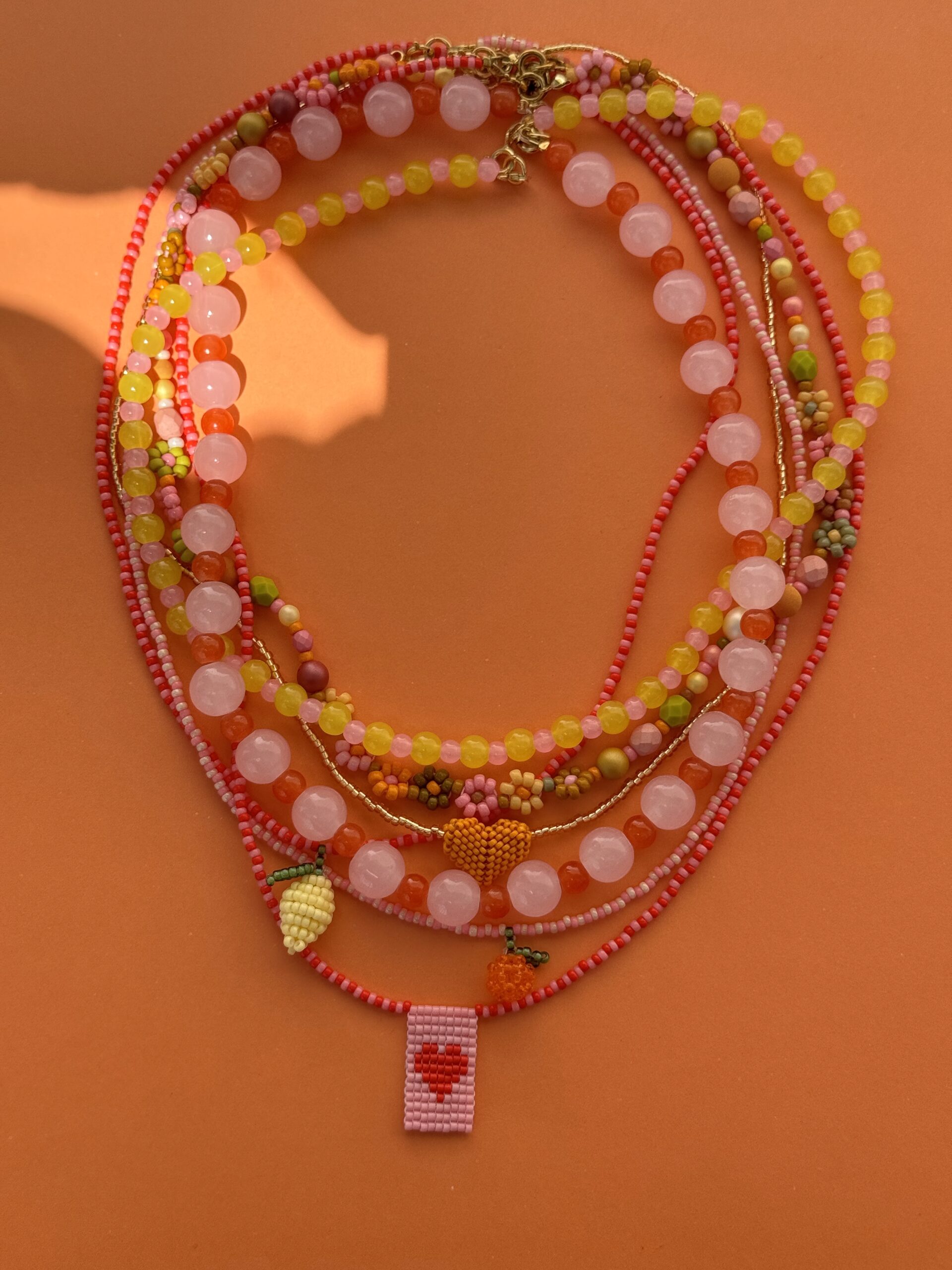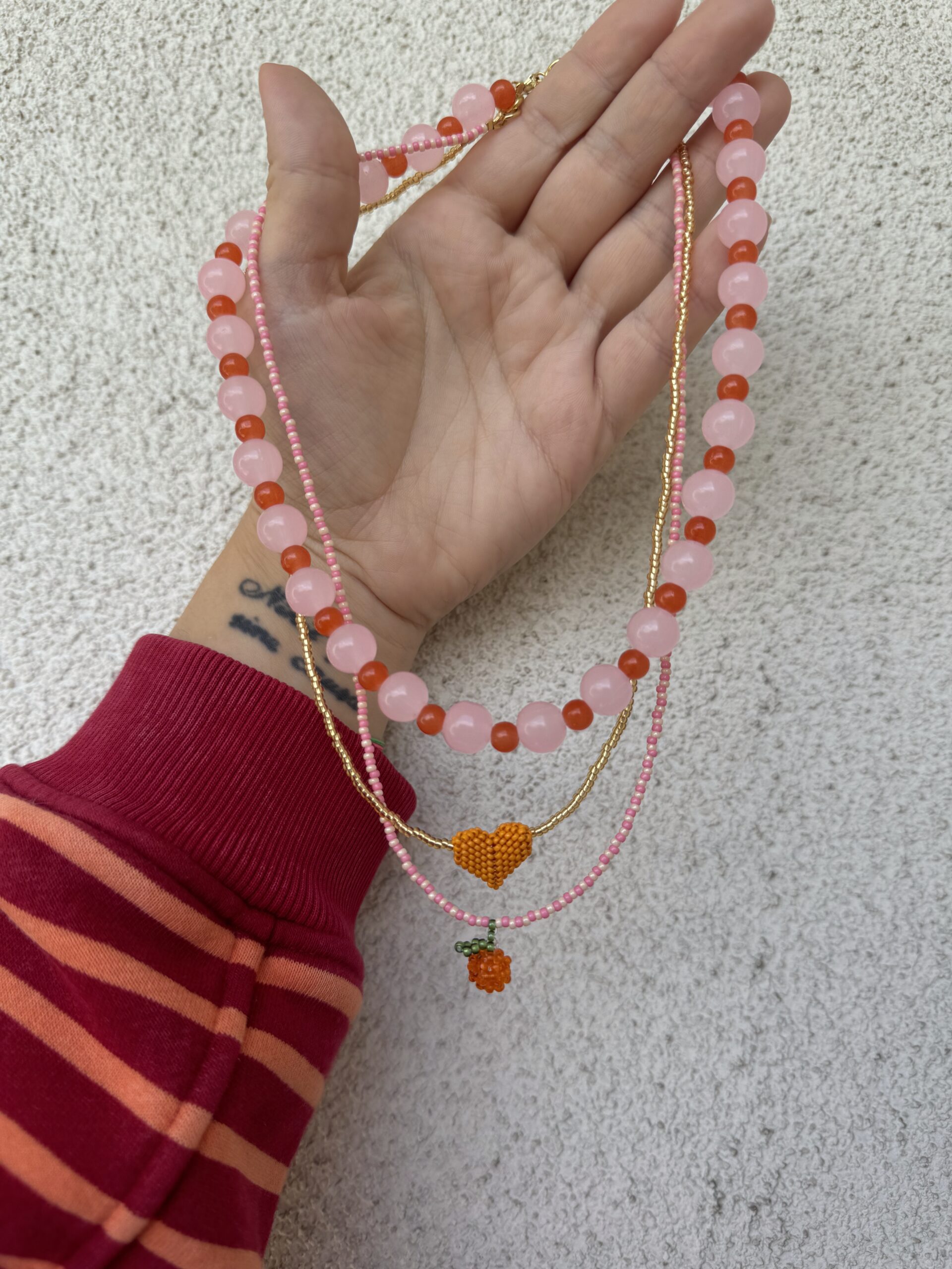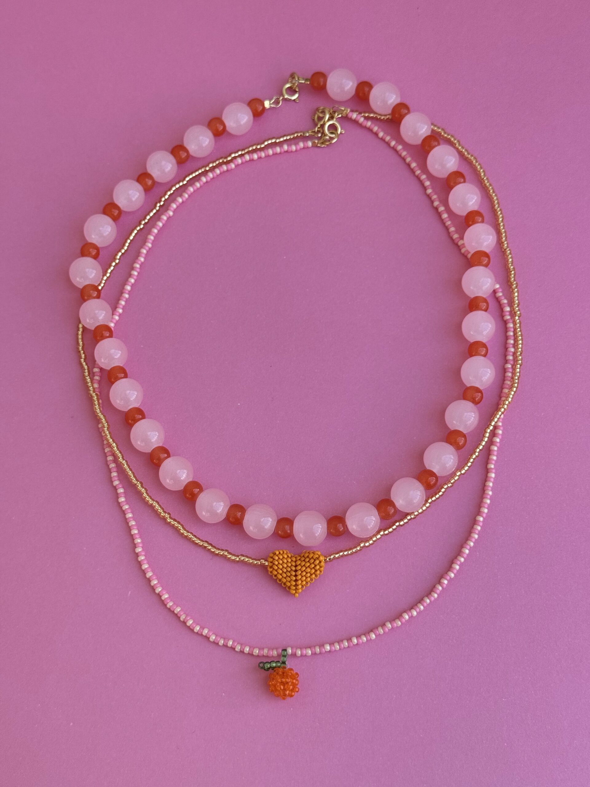 Odkryj kolekcję, która przeniesie Cię w magiczny świat letnich zachodów słońca! Nasz zestaw naszyjników inspirowany jest ciepłymi odcieniami pomarańczy i różu, przywołującymi najpiękniejsze wspomnienia beztroskich chwil. Każdy element tej kolekcji to małe dzieło sztuki, które rozświetli każdą stylizację.