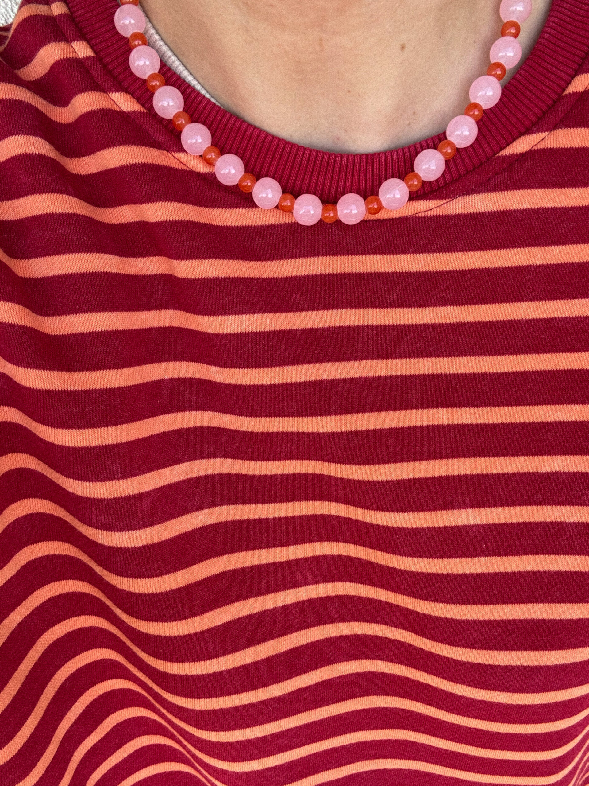 – połączenie różu i pomarańczu tworzy efekt niczym niebo tuż przed zmrokiem. Ten wyrazisty, duży naszyjnik doskonale wygląda zarówno solo, jak i w zestawie z innymi elementami.