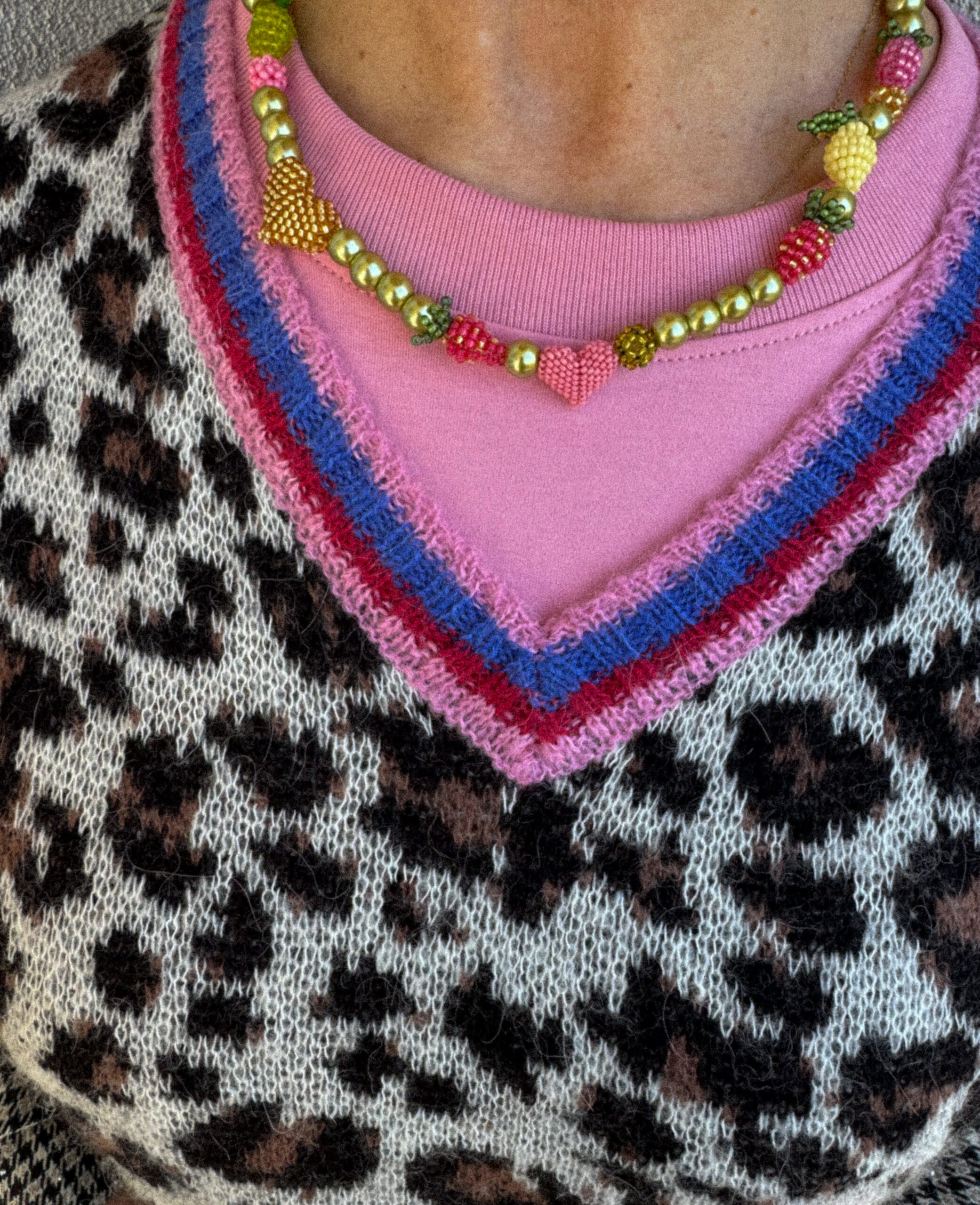 Soczysta kolorystyka naszyjnika przywodzi na myśl letni sad pełen limonek, cytrynek, jabłuszek i truskawek, ale też słodkich serduszek. To prawdziwa eksplozja barw, która ożywi nawet najprostszą stylizację i sprawi, że poczujesz się wyjątkowo. Większa, wyrazista forma naszyjnika sprawia, że wystarczy jeden taki dodatek, by przyciągać spojrzenia i dodać charakteru każdemu outfitowi.