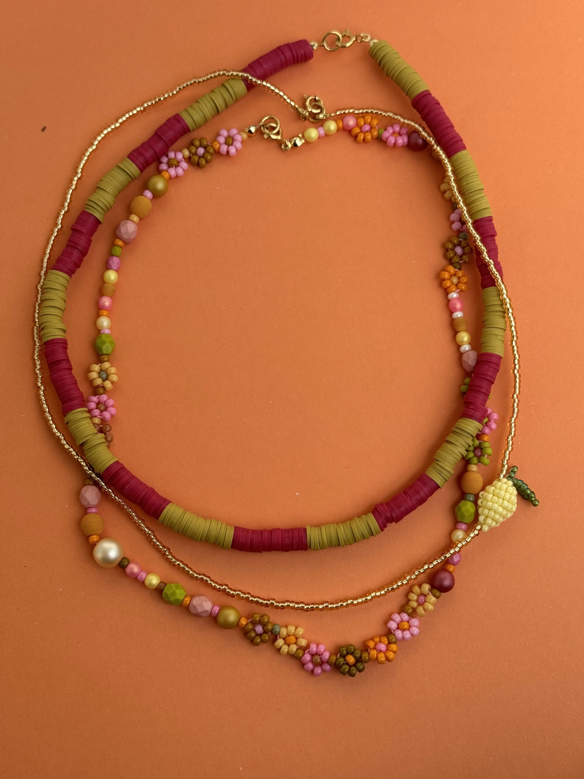 Przenieś się na kwitnącą wiosenną łąkę dzięki naszemu wyjątkowemu zestawowi naszyjników, które zachwycają kolorami i ręcznym wykonaniem. To biżuteria pełna życia, energii i ciepła, idealna na wiosenne dni.